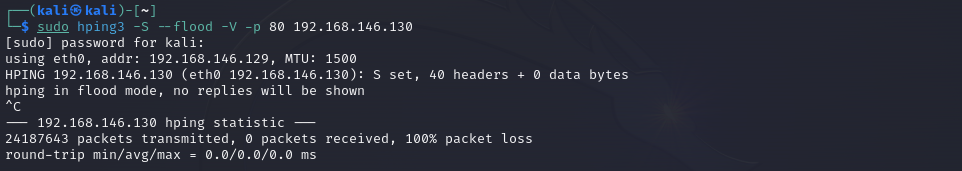 Hping3 aracı ile ağdan büyük miktarda trafik göndererek sistemleri yavaşlatan DoS saldırıları gerçekleştirilebilir.