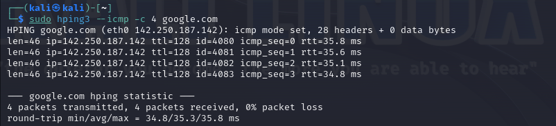 Hping3 ile Basit Bir Ping Atma Örneği: