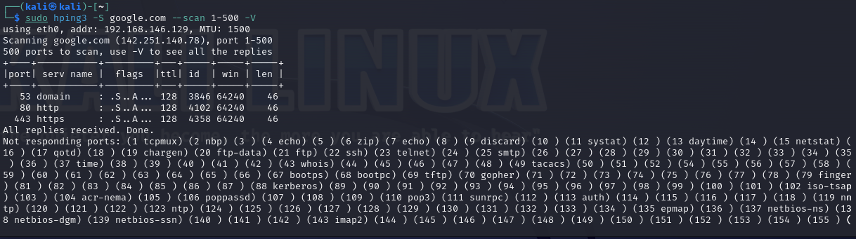 --scan 1-30,70-90şeklinde belirtilen port aralıklarını taramak için kullanılabilir.-9, --listen: Dinleme modu. Bu mod, hping3'ün belirtilen bir port üzerinde dinlemesini ve gelen paketleri analiz etmesini sağlar.