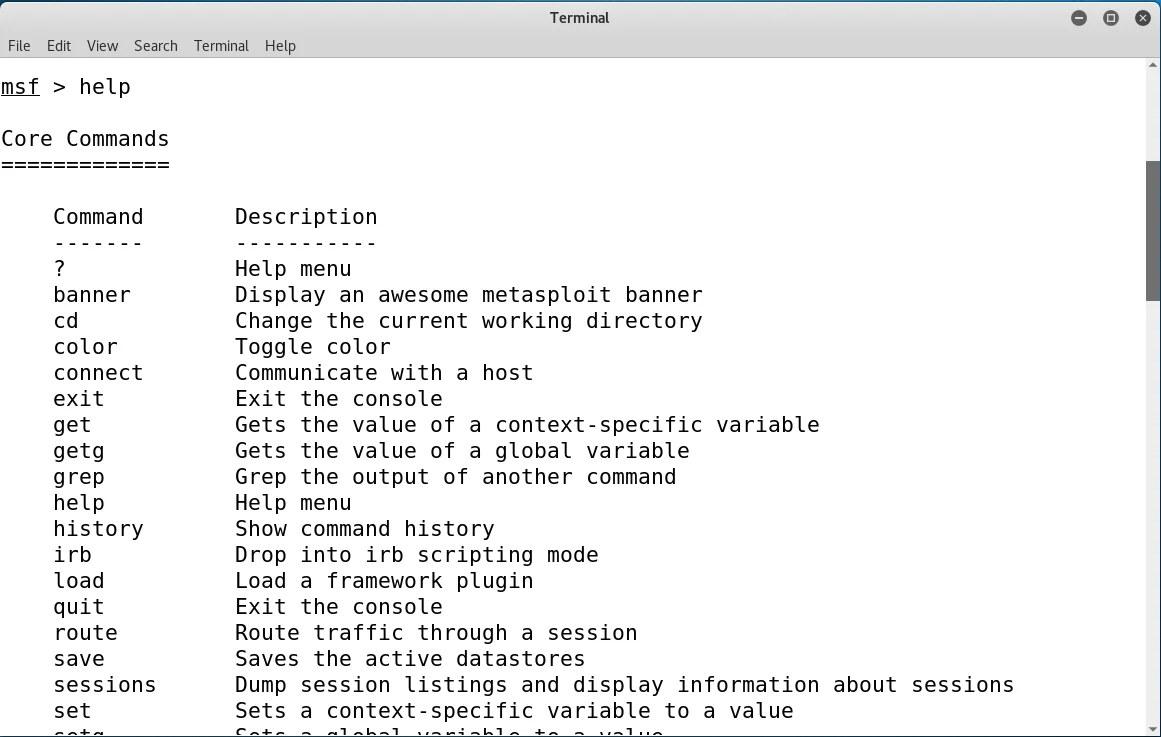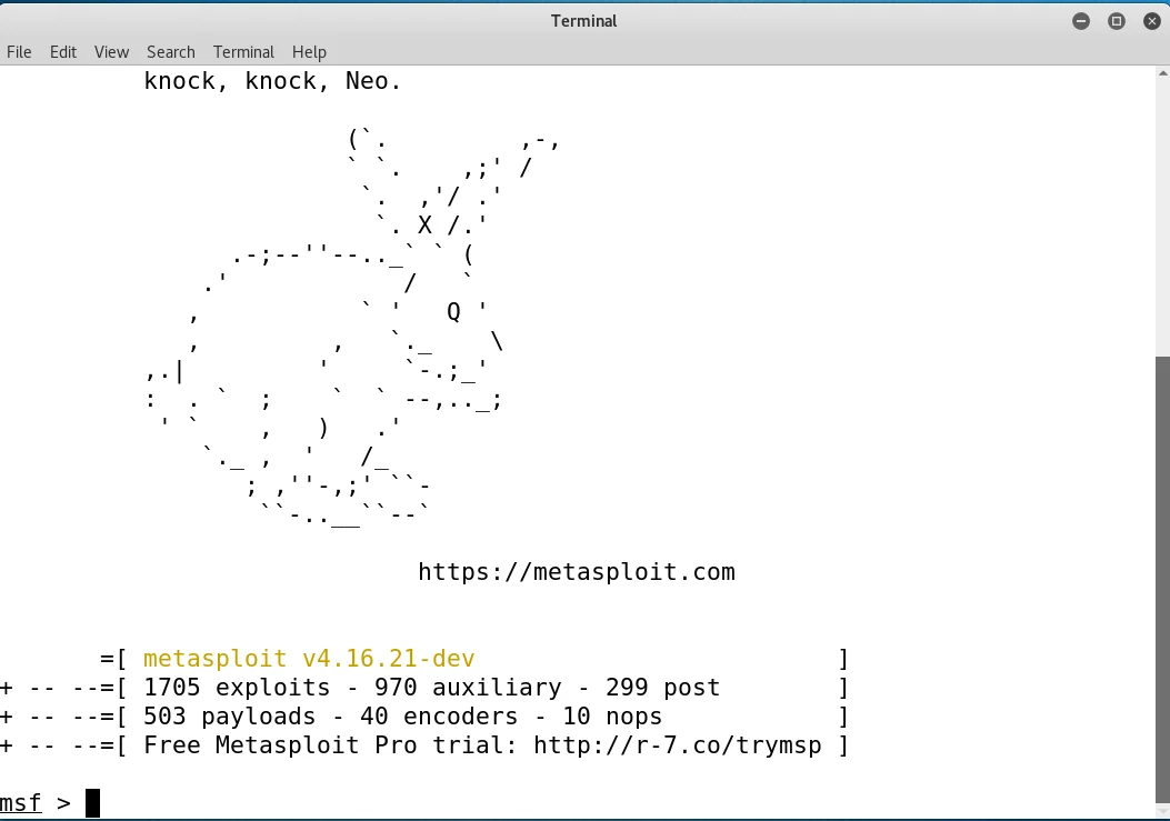 Program başladığında **msf >** bizi karşılar.