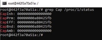 Bunun için capsh kullanabiliriz. capsh, linux yeteneklerini incelemek ve yönetmek için kullanılan bir araçtır.